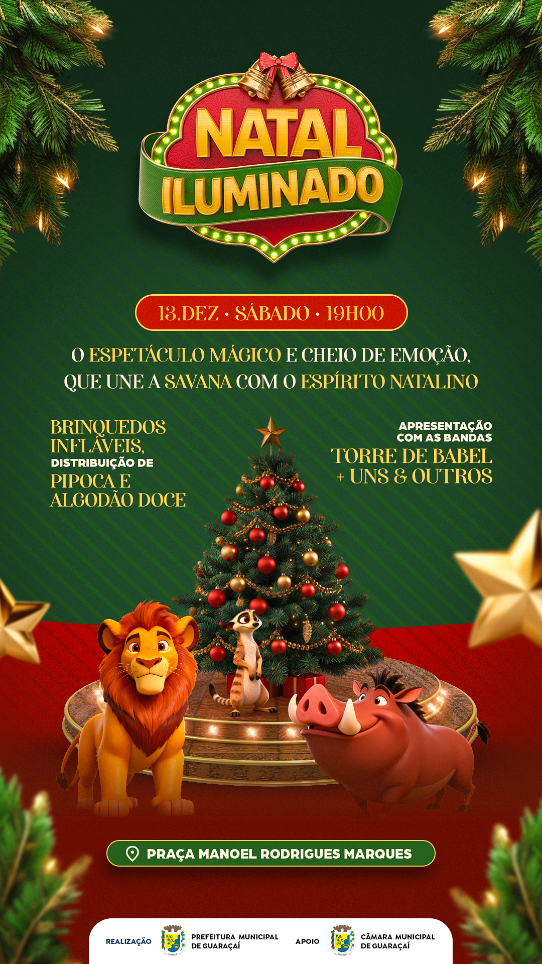 Musical, acender das luzes e bandas marcarão programação do NATAL ILUMINADO DE GUARAÇAÍ NESTE SÁBADO
