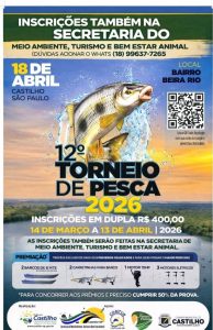 As inscrições para o 12º Torneio de Pesca de Castilho seguem abertas até o dia 13 de abril. Este é um dos eventos mais aguardados