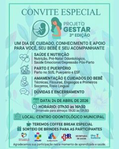 A Prefeitura da Estância Turística de Ilha Solteira realiza, nesta sexta-feira (24 de abril), a 3ª edição do Projeto GESTAR. O curso, voltado para gestantes