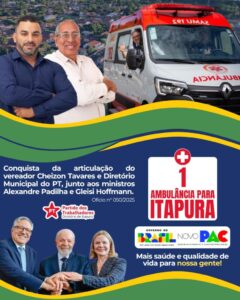 ITAPURA – Em um anúncio oficial realizado nesta sexta-feira (24), Itapura confirmou a conquista de uma nova ambulância para reforçar a frota da saúde local.