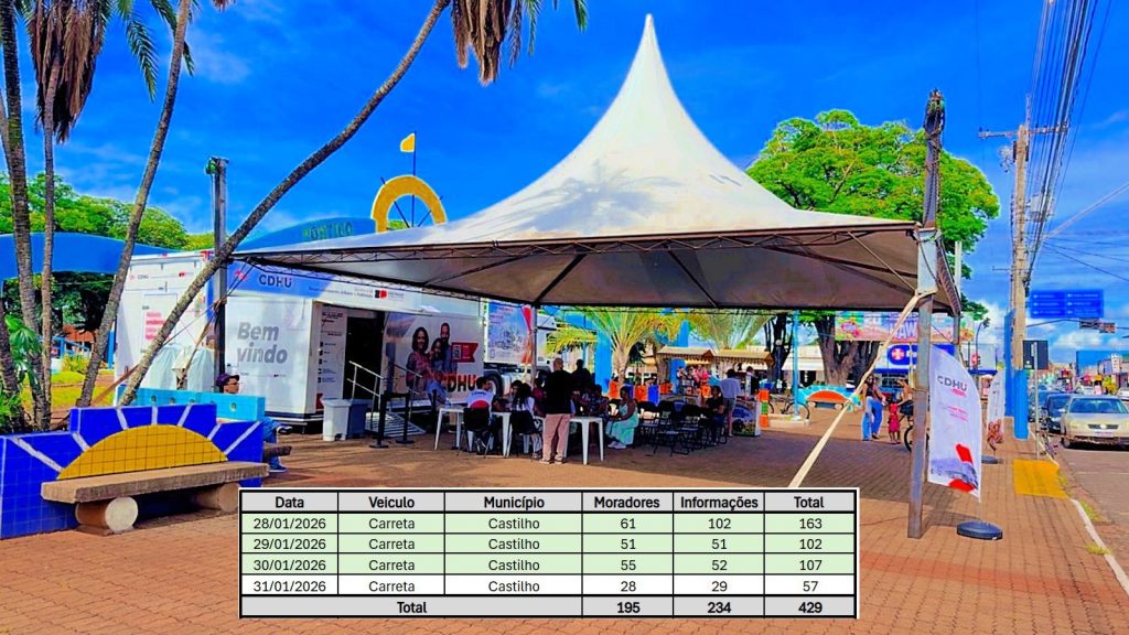 A Carreta do programa CDHU Móvel que esteve estacionada na Praça Matriz de Castilho entre os dias 28 e 31 da semana passada, registrou um total de 429 atendimentos aos cidadãos no curto período de quatro dias.