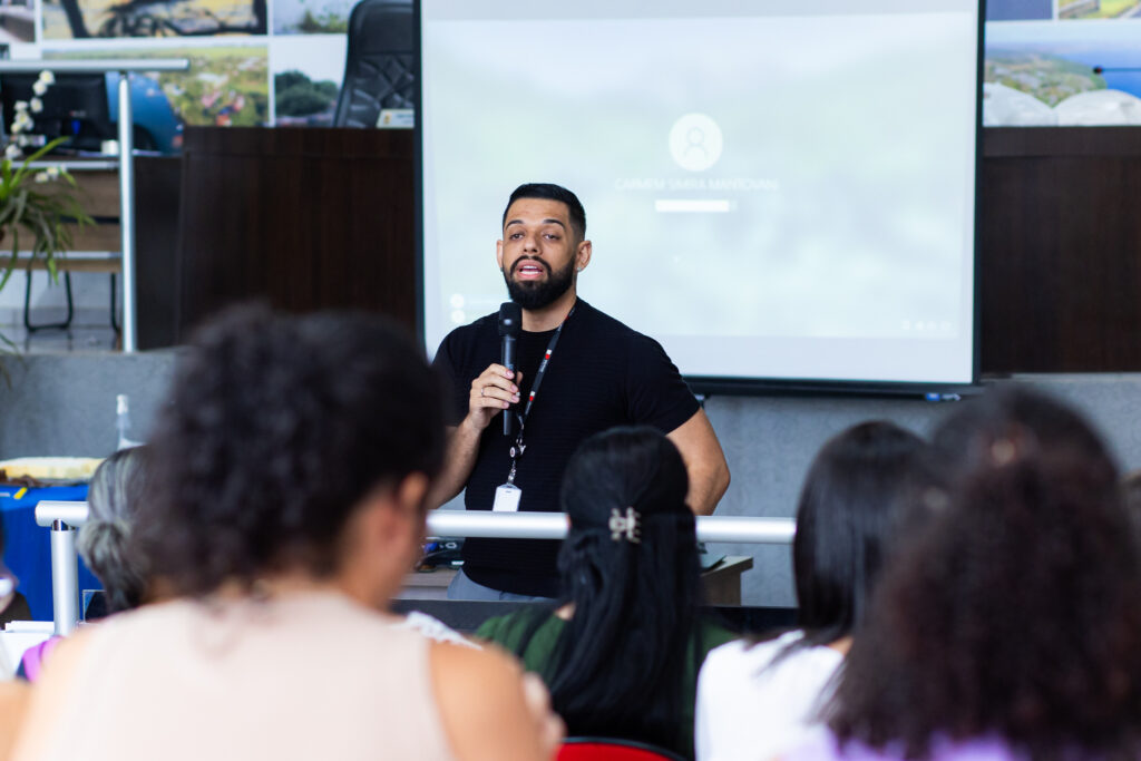 O prefeito e a primeira-dama estiveram presentes e realizaram uma fala de acolhimento, agradecendo a participação de todos e ressaltando a importância da integração entre os municípios para o fortalecimento das ações socioassistenciais em toda a região.