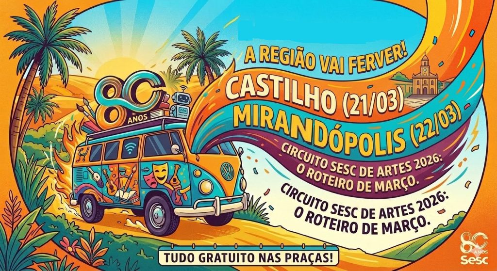 Prepare o coração e o calçado confortável: as praças da nossa região estão prestes a se transformar em grandes palcos a céu aberto. O Circuito Sesc de Artes, um dos maiores eventos culturais do país, confirmou sua rota para 2026, trazendo uma caravana de música, circo, teatro e tecnologia para as cidades que compõem o nosso quadrilátero cultural.