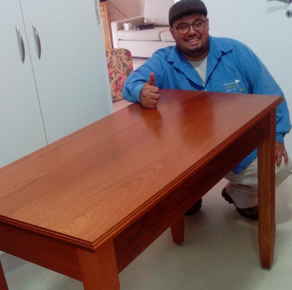 “Trabalho com marcenaria há pouco mais de 30 anos. Comecei aos 12 anos, durante as férias escolares, quando meu pai me orientou a fazer minha primeira mesa. Fiz todo o processo produtivo, do início ao fim. Aos 14 anos já estava trabalhando diretamente na marcenaria”, conta.