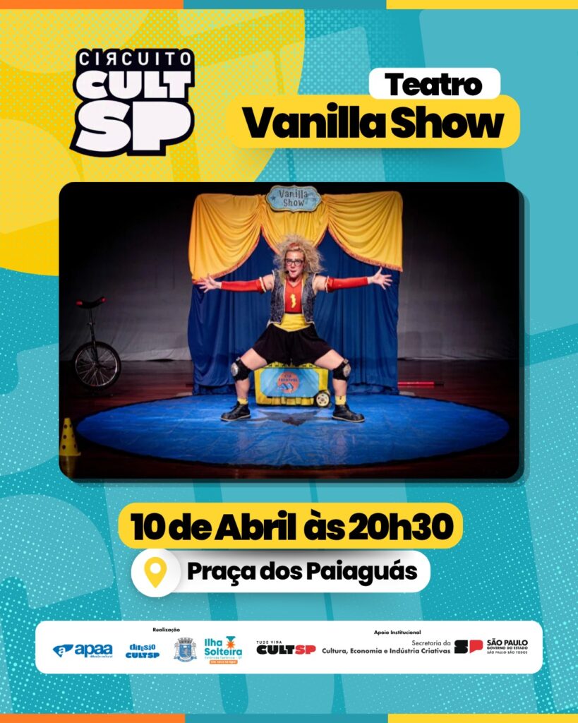 Nesta sexta-feira, 10 de abril, a Praça dos Paiaguás será palco de muita diversão com o espetáculo circense “Vanilla Show”, da Cia. Terrível!