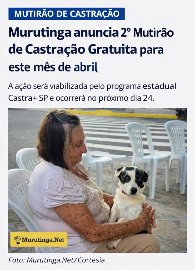 A Prefeitura de Murutinga do Sul, em uma ação contínua de bem-estar animal e controle populacional, confirmou nesta tarde de terça-feira (14) a realização do seu segundo mutirão de castração de cães e gatos neste mês.