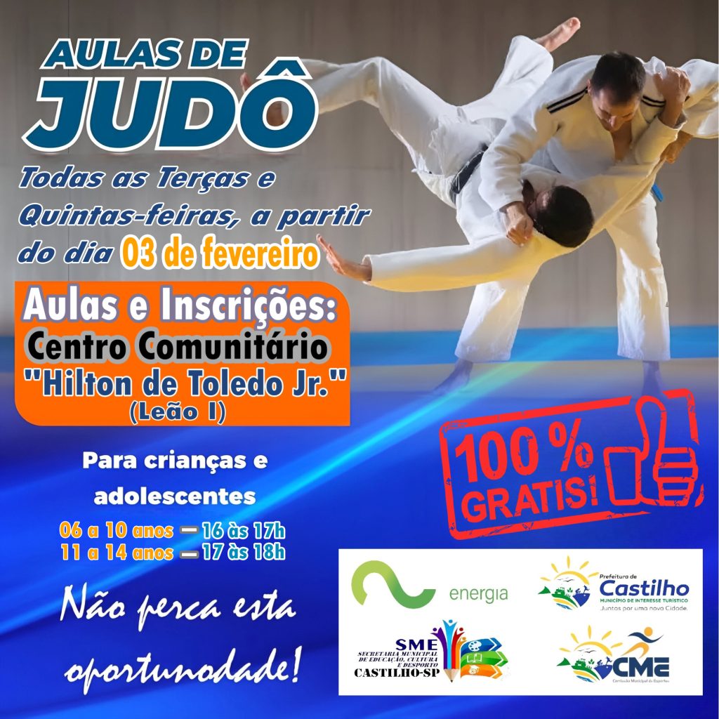 Com entusiasmo, o diretor de Esportes Sylvinho Black, da Prefeitura de Castilho, anunciou mais uma oportunidade imperdível para crianças e adolescentes interessadas em artes marciais. Amanhã, dia 03 de fevereiro, terão início no Centro Comunitário “Hilton de Toledo Júnior” (Leão I), as aulas gratuitas de Judô.