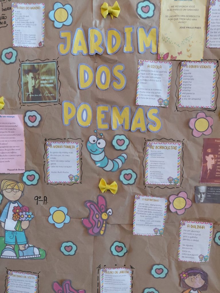- Produção dos Alunos: Toda esta mobilização na unidade escolar resultou na criação de painéis ilustrativos com obras de grandes escritores brasileiros e também na redação de mais de 40 poesias autorais pelos alunos do 6º ao 9º ano.