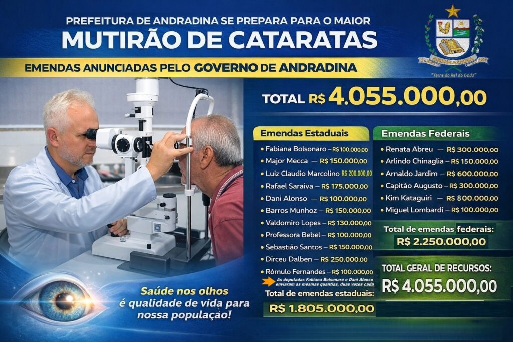 Segundo Ernesto Júnior, que também é secretário de Governo da Prefeitura de Andradina, a cidade está prestes a ver o maior mutirão de cirurgias já realizados na cidade. As ações acontecem todas na Santa Casa de Andradina e devem contemplar desde cirurgias simples identificadas nas Unidades Básicas de Saúde (UBSs) até procedimentos de maior complexidade, como cirurgias de catarata e eletivas.