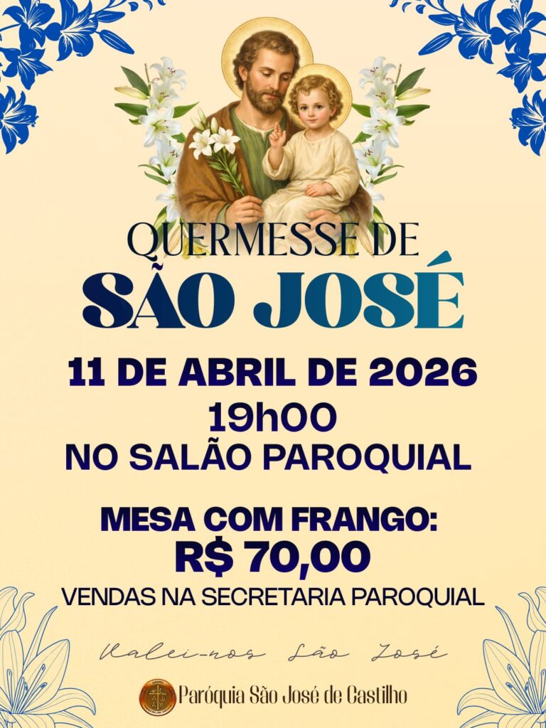 A comunidade católica de Castilho já vive a expectativa para mais uma noite especial de fé, convivência e fraternidade. A Paróquia São José de Castilho realiza no próximo dia 11 de abril de 2026 (sábado), a partir das 19h00, no Salão Paroquial, a tradicional Quermesse de São José, em honra ao padroeiro da paróquia e da cidade.